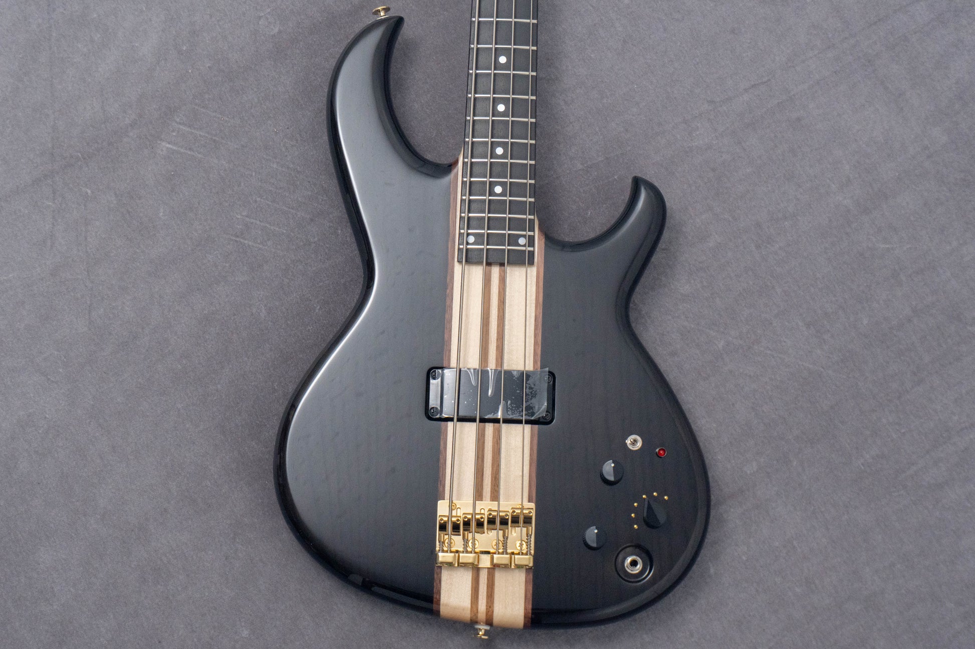It features a through-neck construction, with the neck crafted from a 7-piece laminate of maple and walnut.