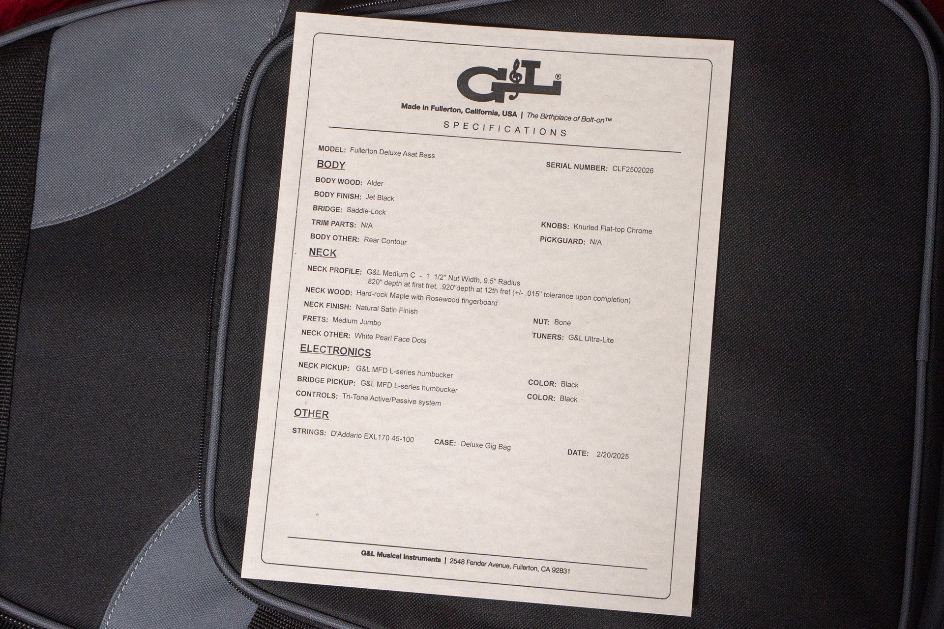 This bass, part of the Fullerton Deluxe Series, was manufactured at the Fullerton factory with fixed specifications based on customer requests.