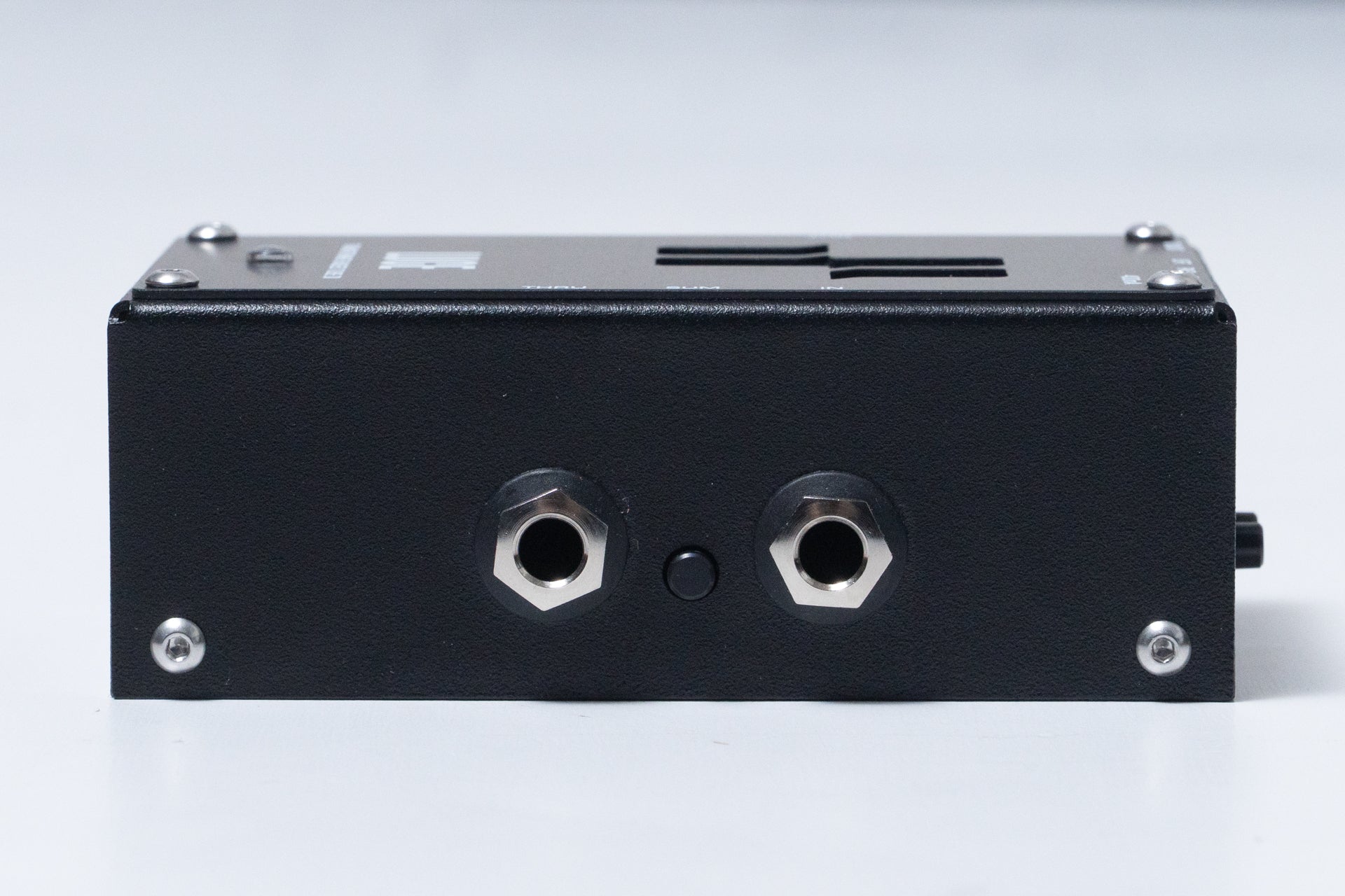 THRU: Outputs a copy of the 1/4" INPUT signal. With the SUM switch ON, it functions as a second input, supporting stereo output signals or dual instrument signals.