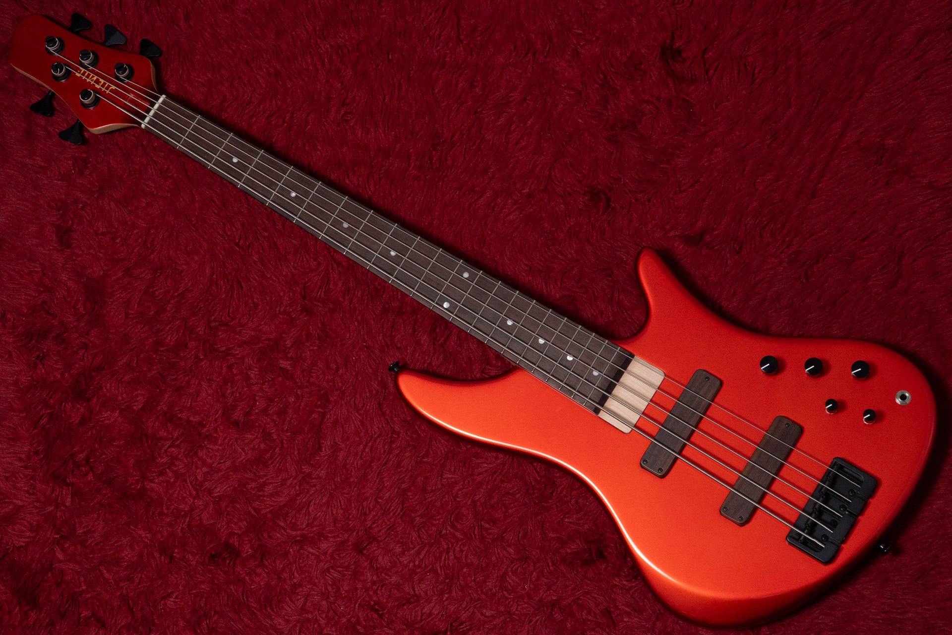 The JIENIE MJ-5 embodies the thickness and attack of a passive JB, the strength of the low and high frequencies typical of a JB, and the treble texture of a 4-string bass, despite being a 5-string.