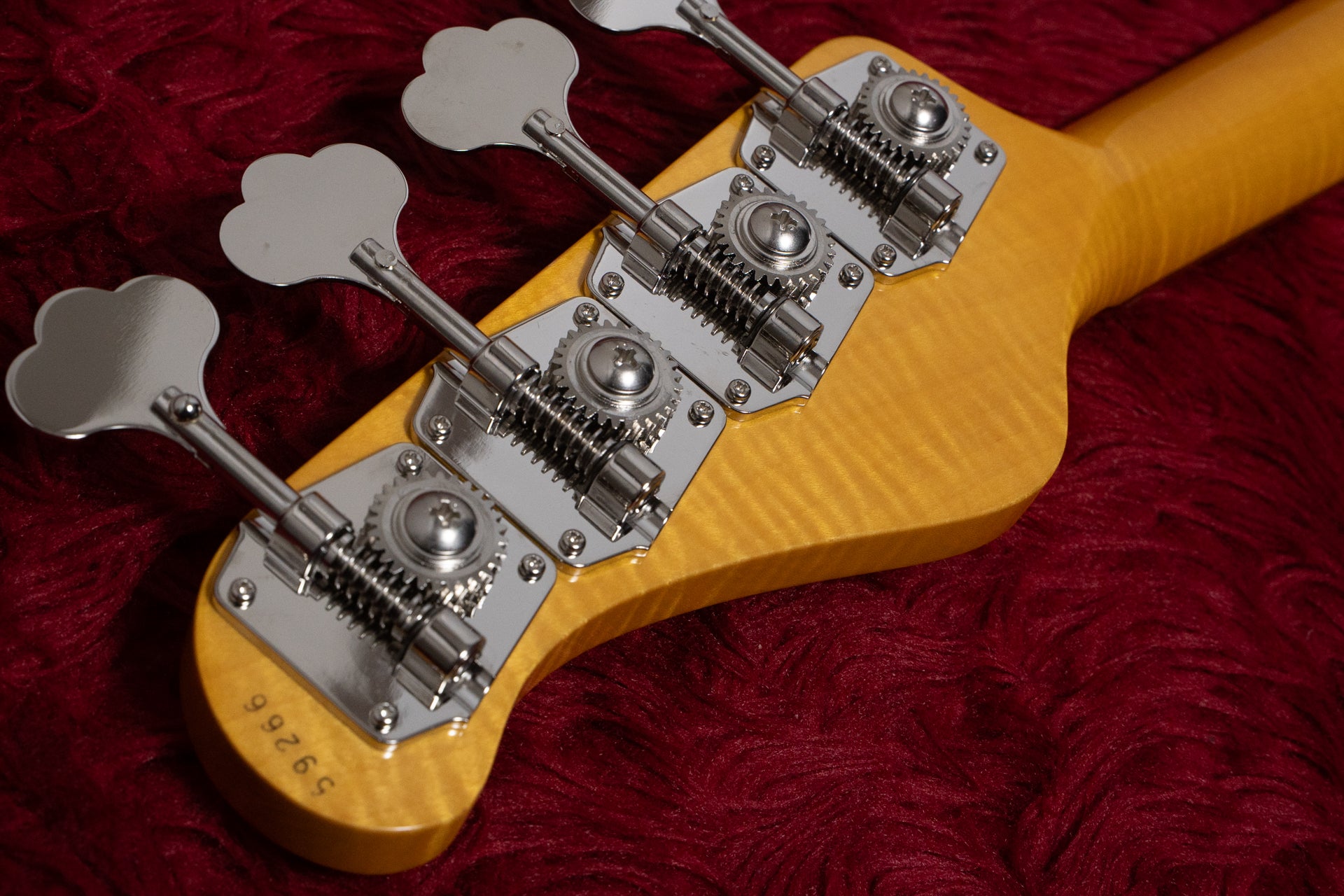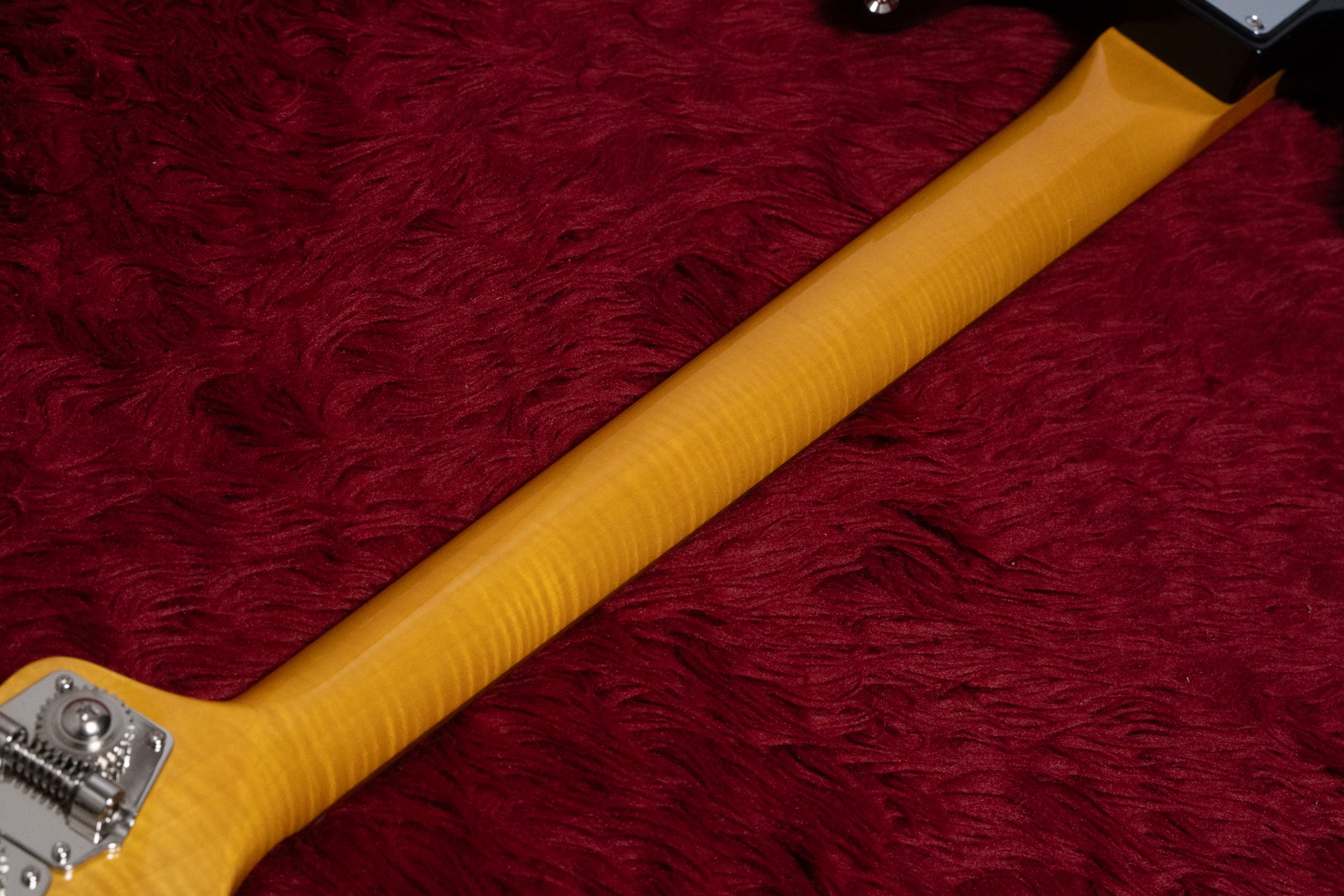 The neck has a gloss finish, showcasing beautiful grain.