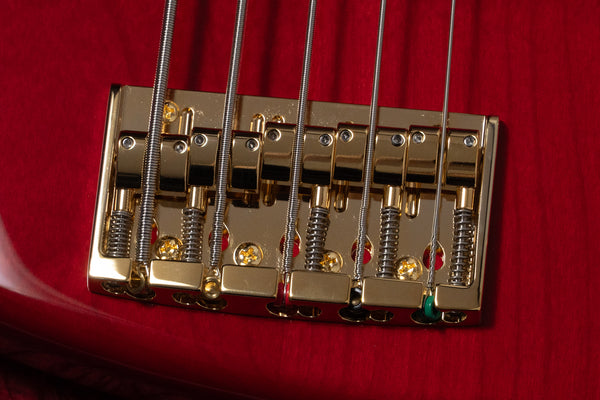The bridge is a GOTOH 404BO-5, but the saddles are brass.