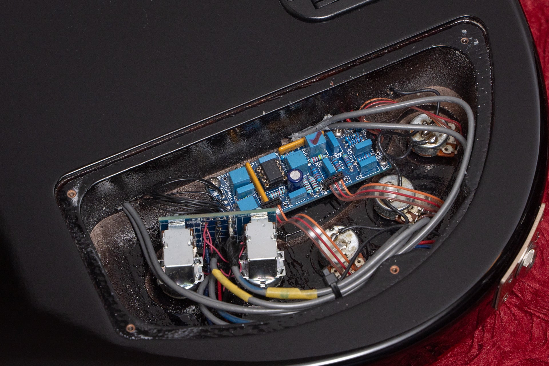 The PU is the original rail pole piece humbucking type, the preamp is original, and it is equipped with a 3-band EQ.