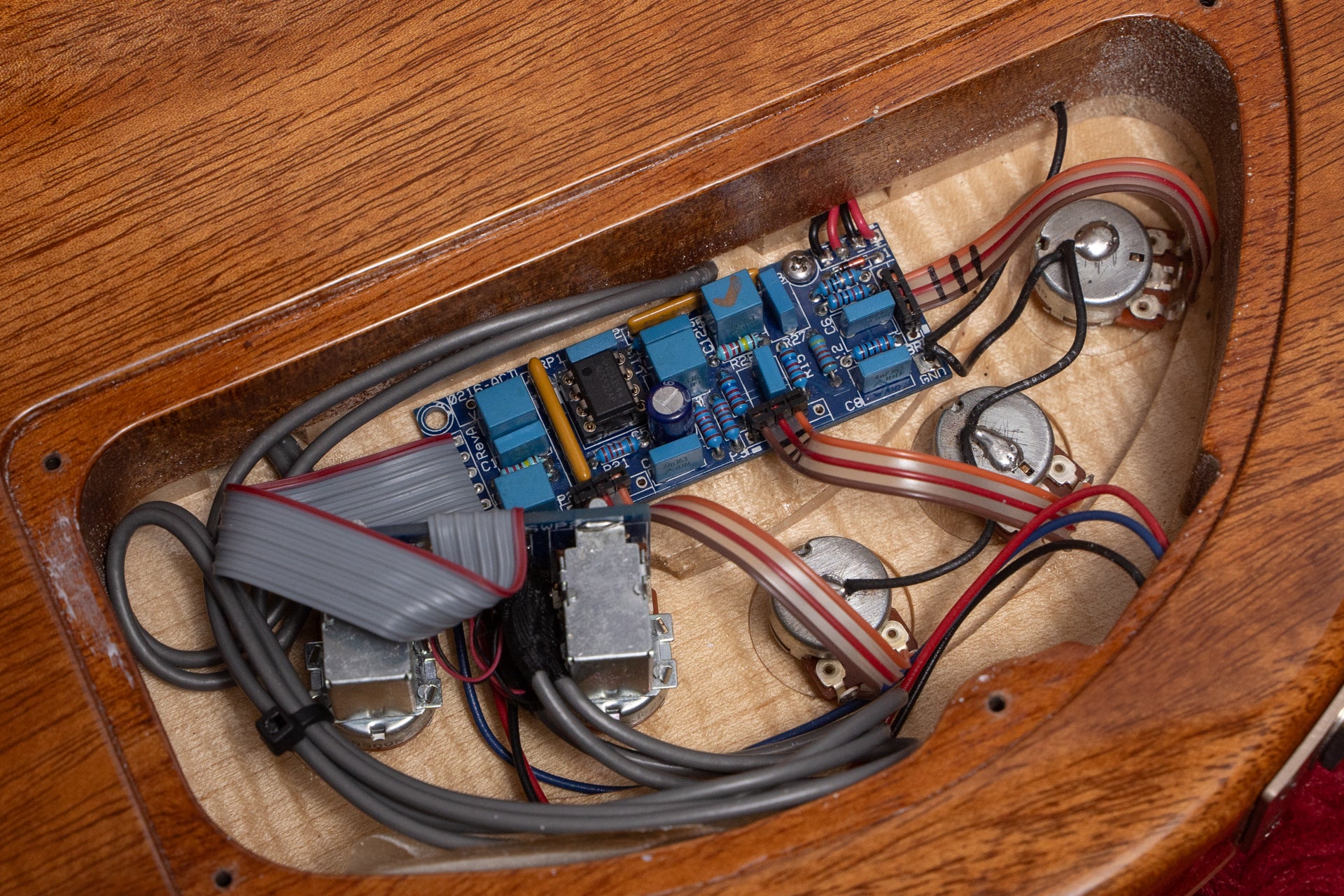 Controls are 2 volumes, 1 tone + 3 band EQ.