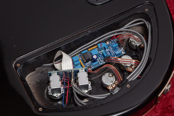 The PU is the original rail pole piece humbucking type, the preamp is original, and it is equipped with a 3-band EQ.