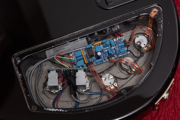 The PU is the original rail pole piece humbucking type, the preamp is original, and it is equipped with a 3-band EQ.