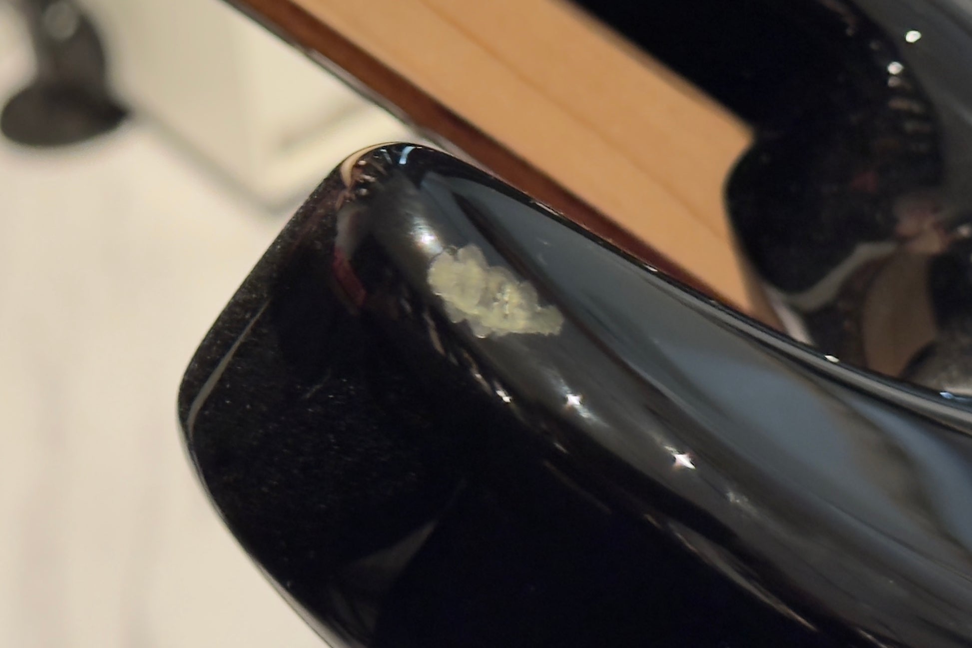 This item has been in stock for a long time, so we are offering it at a special price. There is a scratch near the cutaway on the back of the body.