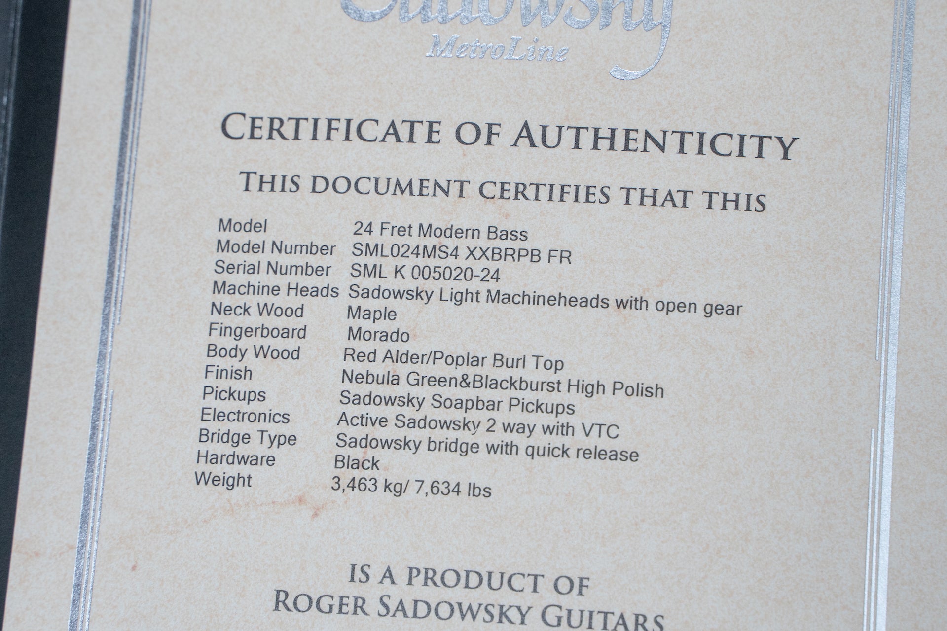 It has a wide tonal range, but is designed to produce well-balanced string vibrations from top to bottom, output by Sadowsky's high-quality pickups and preamp.