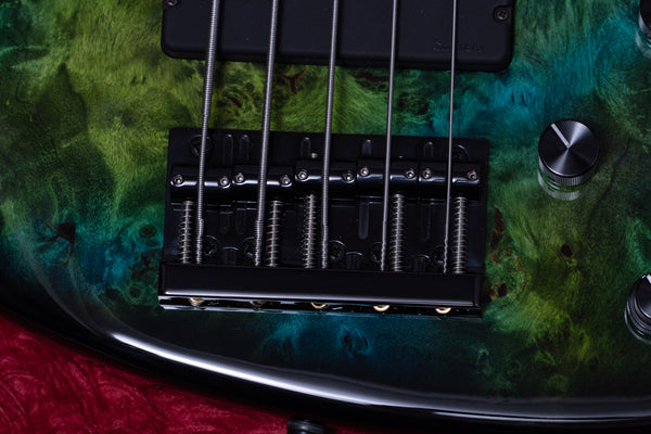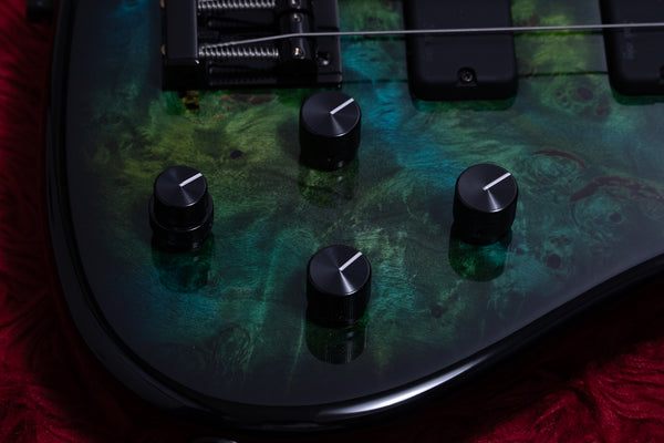 This distinctive look is created by coloring the Poplar Burl body top in Nebula Green & Black Burst.