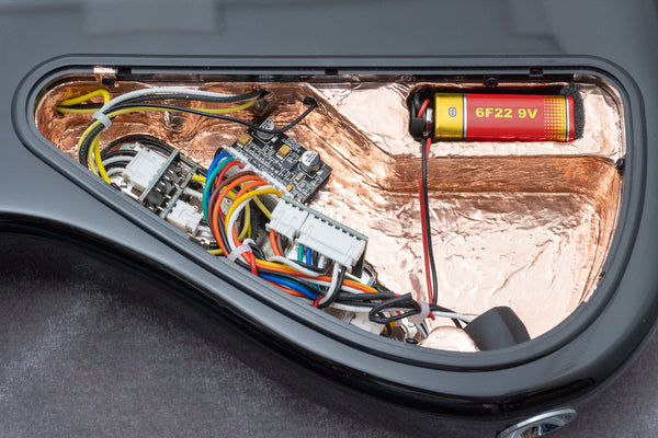 A push-pull switch allows the active circuit to be bypassed for passive playing.