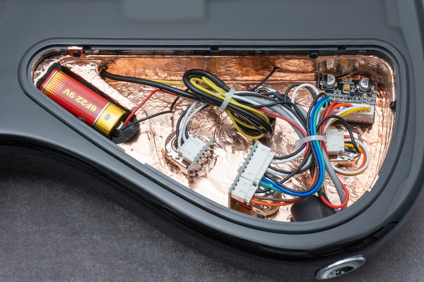 A push-pull switch allows the active circuit to be bypassed for passive playing.