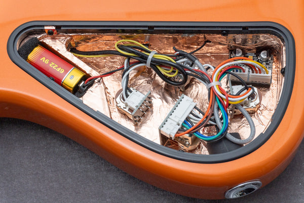 A push-pull switch allows the active circuit to be bypassed for passive playing.