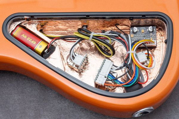 A push-pull switch allows the active circuit to be bypassed for passive playing.