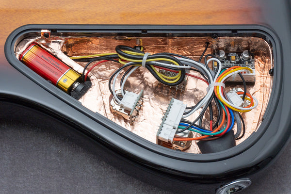 A push-pull switch allows the active circuit to be bypassed for passive playing.