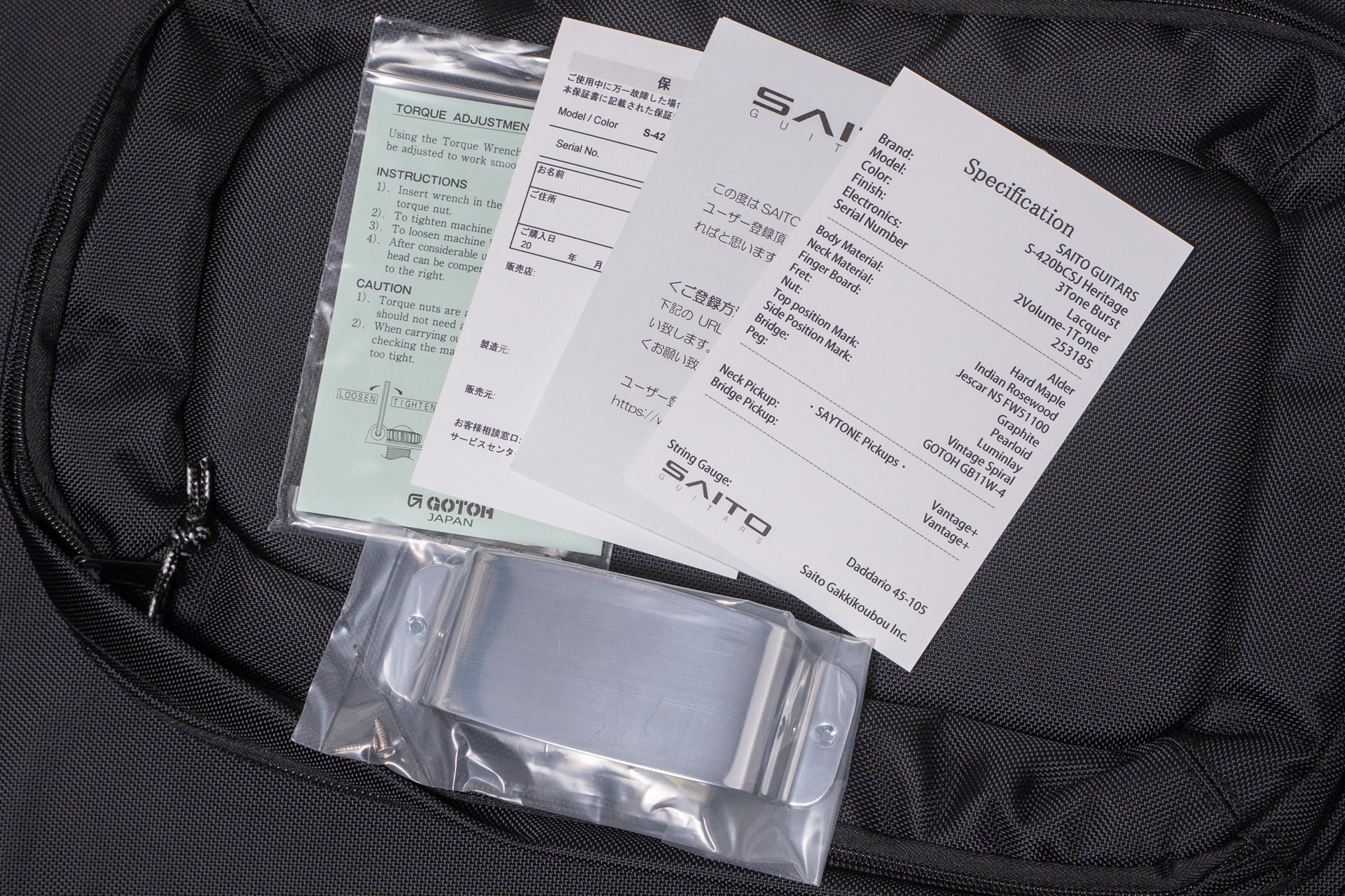 The frets are Jescar NS FW51100, and the tuning machines are GOTOH, making for a great hardware experience.