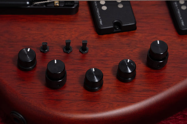 The controls are diverse yet simple: Volume/Tone (Dual Pot), Pickup Blender, Treble, Middle/Mid Frequency (Dual Pot), Bass, Mini Toggle (Active&Passive), and two Mini Toggles (Pickup Series/Split/Parallel).