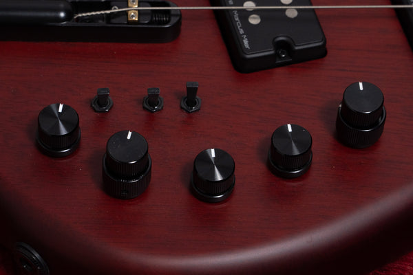 The controls are diverse yet simple: Volume/Tone (Dual Pot), Pickup Blender, Treble, Middle/Mid Frequency (Dual Pot), Bass, Mini Toggle (Active&Passive), and two Mini Toggles (Pickup Series/Split/Parallel).