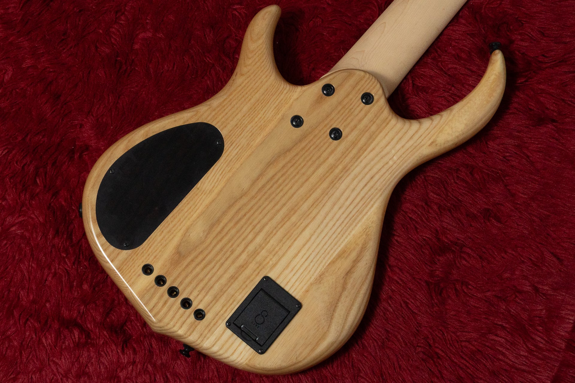 The body is made of swamp ash, the fingerboard is ebony, and the neck is maple.