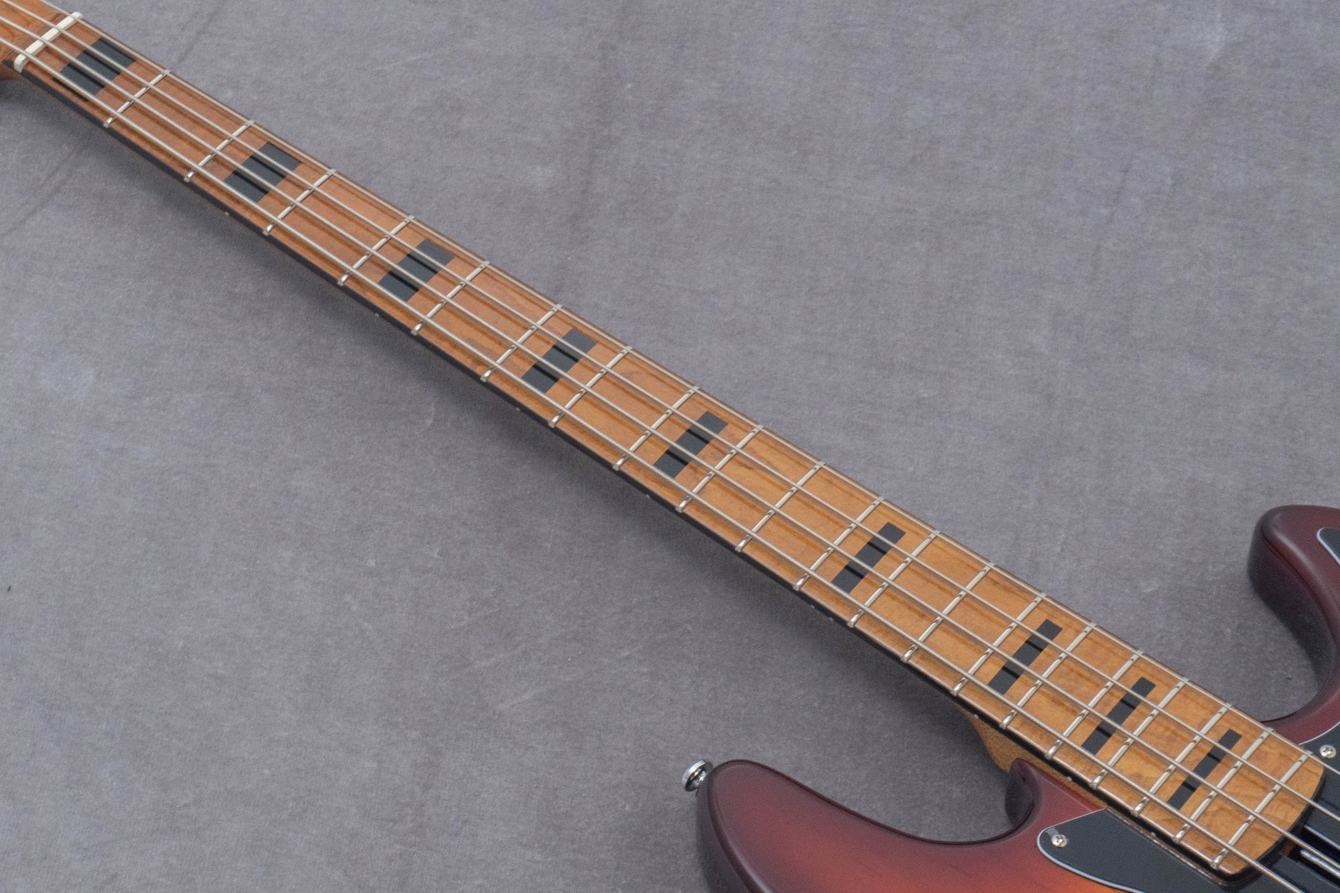 The fingerboard also uses roasted maple.