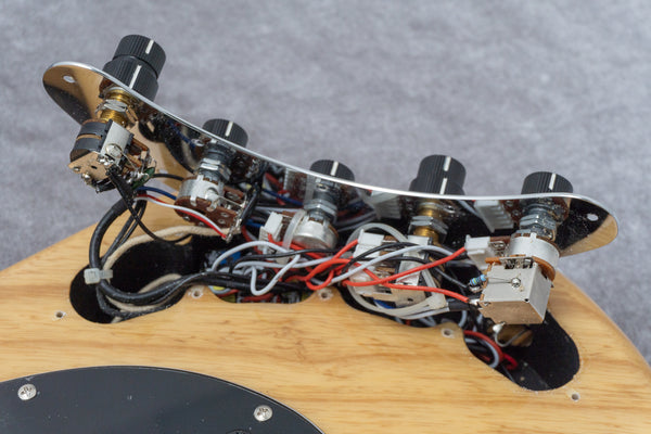 The fingerboard is made of Roasted Maple, Maple, or Ebony, depending on the model.