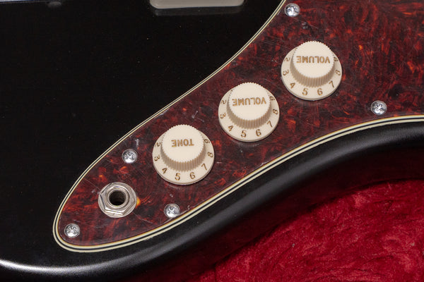 The body is made of alder and the fingerboard is made of rosewood, a classic wood construction.