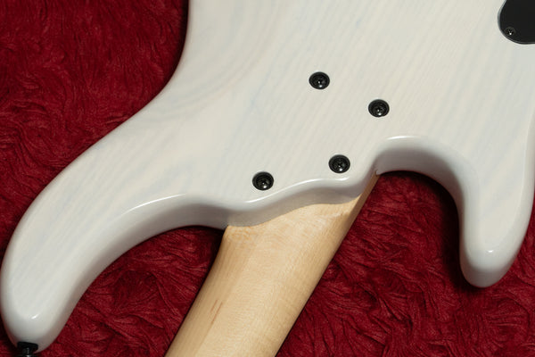 The body is a 3P laminate type with an ash body, blackwood fingerboard, and maple neck.
