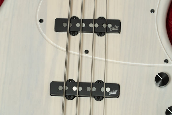 The pickups are Aguilar AG4J-HOT, and the circuit is a passive type.
