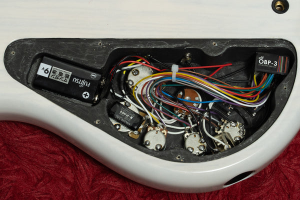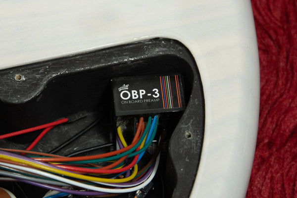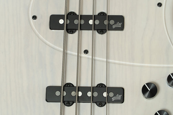 The pickups are Aguilar AG4J-HOT, and the preamp is Aguilar's OBP-3.