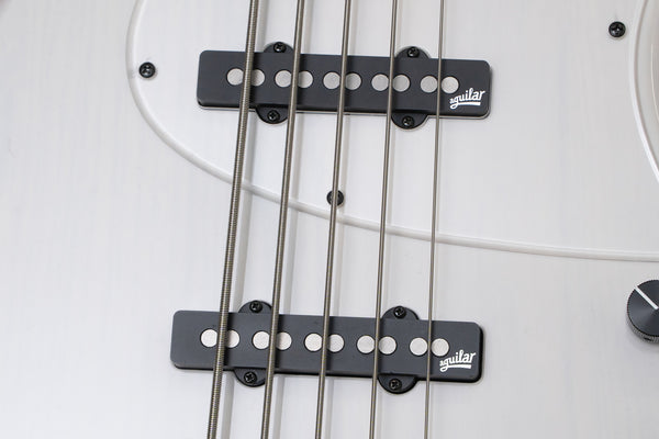 The pickups are Aguilar AG4J-HOT, and the circuit is passive.