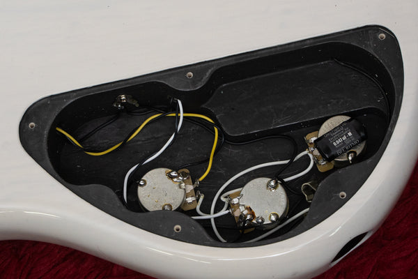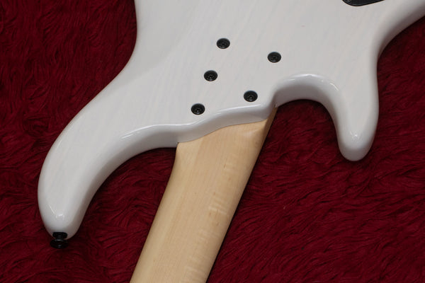 The body is ash, the fingerboard is maple, and the neck is a 3-ply laminate maple type.