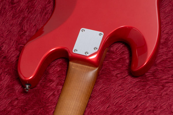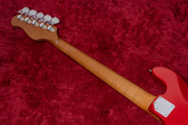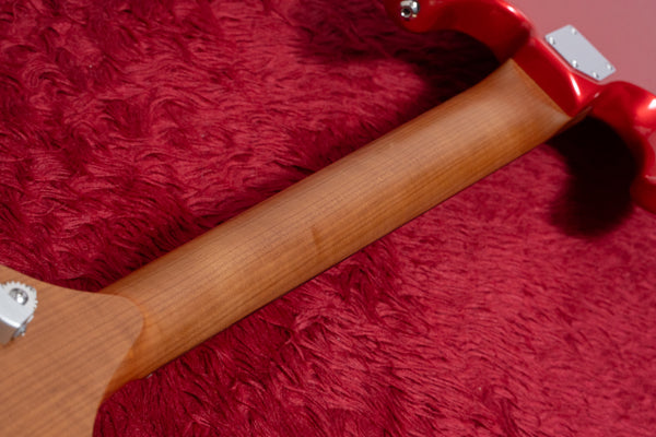 The neck is made of roasted maple, which has a characteristic straight grain.