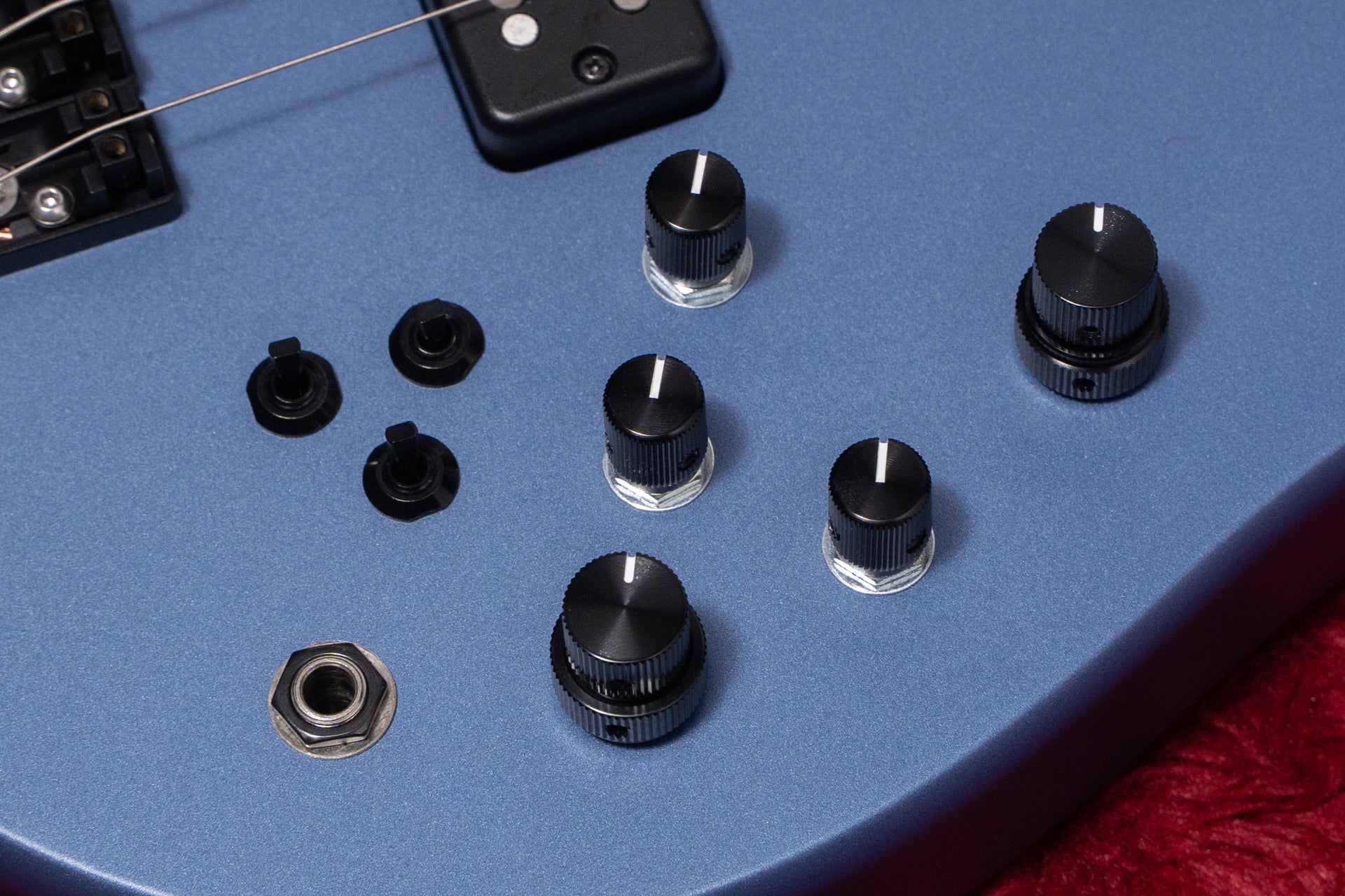Controls include volume/tone, balancer, bass/treble, low-mid, high-mid, 2x pickup switches, and a preamp bypass switch.