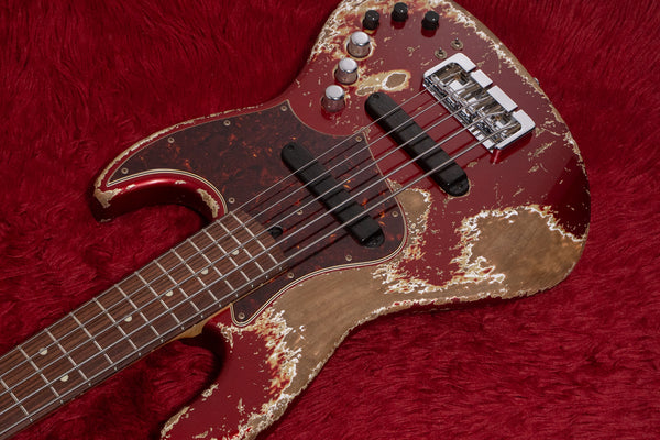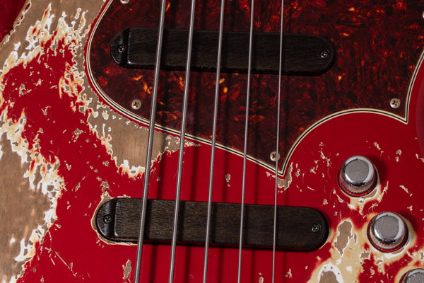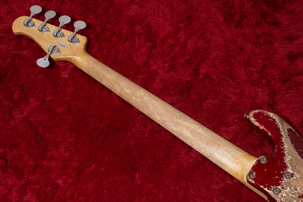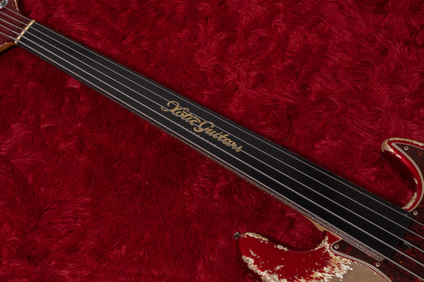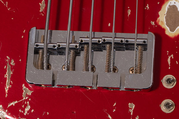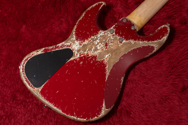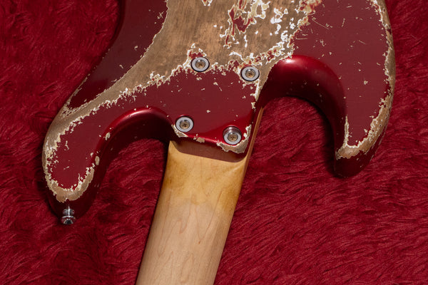 The finish is lacquer, with a matching headstock in Dark Candy Apple Red, and the guitar is Heavy Aged.