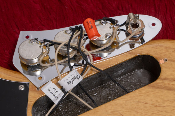The pickups are Lindy Fralin, and the circuit is passive 2Vol, 1Tone.