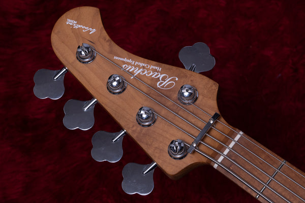 Bacchus is a Japanese brand based in Nagano. It is a subsidiary of Divider, which owns the large Asuka Factory, a guitar factory. The high quality possible only because the factory itself produces its guitars is highly regarded by many musicians. This model is a WOODLINE model in the Japan Tune-up series, a new series created with the aim of achieving high quality. The Japan Tune-up series is manufactured overseas, with nut adjustment and fret filing performed domestically. This allows for high quality while keeping prices low, rivaling the top quality of Japanese-made guitars in every aspect. I actually saw the work being done in Divider's workshop in Nagano, and the careful finishing of each guitar is no different from that of the top-of-the-line HANDMADE series. The WL-5 is already a popular model, and its high quality has been highly praised. This newly released model features a gorgeous quilted maple body top. As you can see, the looks are impressive, but you wouldn't expect it to be in this price range. I was surprised. This is usually unheard of, but I think what's great about Divider is that they can bring about innovations like this. The neck is also made of roasted maple. Roasted maple is a wood that is highly stable when treated at high temperatures, which evaporates the moisture and oils inside the wood. It was originally a building material for Finnish saunas, and is particularly resistant to high temperatures and humidity. Bacchus also has many passive models, but this AC model is equipped with an active circuit. Making full use of the two-band treble and bass EQ allows for powerful sound creation. The super smooth playing feel, typical of the brand, is a distinctive feature, and the sound is also smooth. Roasted maple is known for its smooth attack and mellow tone, and this model is no exception. Specifications like these are not usually found in this price range. You get a powerful sound with a smooth response. It's so comfortable to play, you'll want to play an instrument like this for a long time. An exceptional product with an incredibly low price and high quality. I'd like to thank Divider for shaping the modern musical instrument industry, where products like this are an option. This is an official manufacturer outlet product. As this item has been stored for a long time, there may be cosmetic scratches. A warranty is provided for all other aspects. ●SPECS Body Top: Quilted Maple Body: Nyato Neck: Roasted Maple Fingerboard: Roasted Maple Nut: PPS Bridge: JB bridge with brass saddle Machineheads: Open gear Fret: Nickel Silver Pickup: Original JB set Preamp: Bacchus BBP2 Controls: 1 Vol, 1 Bal, Treble, Bass, Preamp On/Off Switch Scale: 864mm (34 inches) Fingerboard Radius: 400R Width at Nut: 45.0mm Finish: Open-pore Strings: D'addario XL-165-5 Accessories: Gig bag, warranty card, wrench Included: Original soft case Text: Shunsuke Saga Inspection: Shinohara & Oshima Manufacturer's warranty included Items will be packed in a hard cardboard box. We ship internationally. Contact Information LINE: vwj2699r Email: info@bassick.jp TEL: 045-534-7133 |