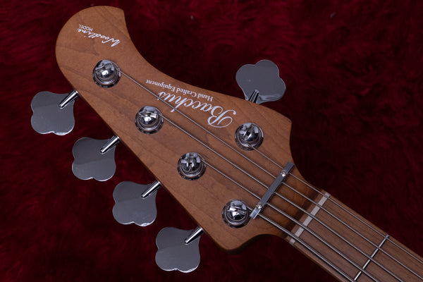 Bacchus is a Japanese brand based in Nagano. It is a subsidiary of Divider, which owns the large Asuka Factory, a guitar factory. The high quality achieved through in-house production is highly regarded by musicians. This model is a WOODLINE model in the Japan Tune-up series, a new line created with a focus on high quality. The Japan Tune-up series is manufactured overseas, with nut adjustment and fret filing performed domestically. This approach allows for high quality while keeping prices low, rivaling top-quality Japanese products in every aspect. I actually saw the work being done in Divider's workshop in Nagano, and the careful craftsmanship of each guitar is no different from that of the top-of-the-line HANDMADE series. The WL-5 is already a popular model, highly acclaimed for its high quality. This newly released model features a gorgeous spalted maple body top. As you can see, the looks are impressive, but you wouldn't expect it to be in this price range. I was surprised. This is usually unheard of, but I think what's great about Divider is that they can bring about innovations like this. The neck is also made of roasted maple. Roasted maple is a wood that is highly stable when treated at high temperatures, which evaporates the moisture and oils inside the wood. It was originally a building material for Finnish saunas, and is particularly resistant to high temperatures and humidity. Bacchus also has many passive models, but this AC model is equipped with an active circuit. Making full use of the two-band treble and bass EQ allows for powerful sound creation. The super smooth playing feel, typical of the brand, is a distinctive feature, and the sound is also smooth. Roasted maple is known for its smooth attack and mellow tone, and this model is no exception. Specifications like these are not usually found in this price range. You get a powerful sound with a smooth response. It's so comfortable to play, you'll want to play an instrument like this for a long time. An exceptional product with an incredibly low price and high quality. I'd like to thank Divider for shaping the modern musical instrument industry, where products like this are an option. This is an official manufacturer outlet product. As this item has been stored for a long time, there may be cosmetic scratches. A warranty is provided for all other aspects. ●SPECS Body Top: Spalted Maple Body: Nyato Neck: Roasted Maple Fingerboard: Roasted Maple Nut: PPS Bridge: JB bridge with brass saddle Machineheads: Open gear Fret: Nickel Silver Pickup: Original JB set Preamp: Bacchus BBP2 Controls: 1 Vol, 1 Bal, Treble, Bass, Preamp On/Off Switch Scale: 864mm (34 inches) Fingerboard Radius: 400R Width at Nut: 45.0mm Finish: Open-pore Strings: D'addario XL-165-5 Accessories: Gig bag, warranty card Included: Original soft case Text: Shunsuke Saga Inspection: Hosoya Manufacturer's warranty included Items will be packed in a hard cardboard box. We ship internationally. Contact Information LINE: vwj2699r Email: info@bassick.jp TEL: 045 594 7308 |