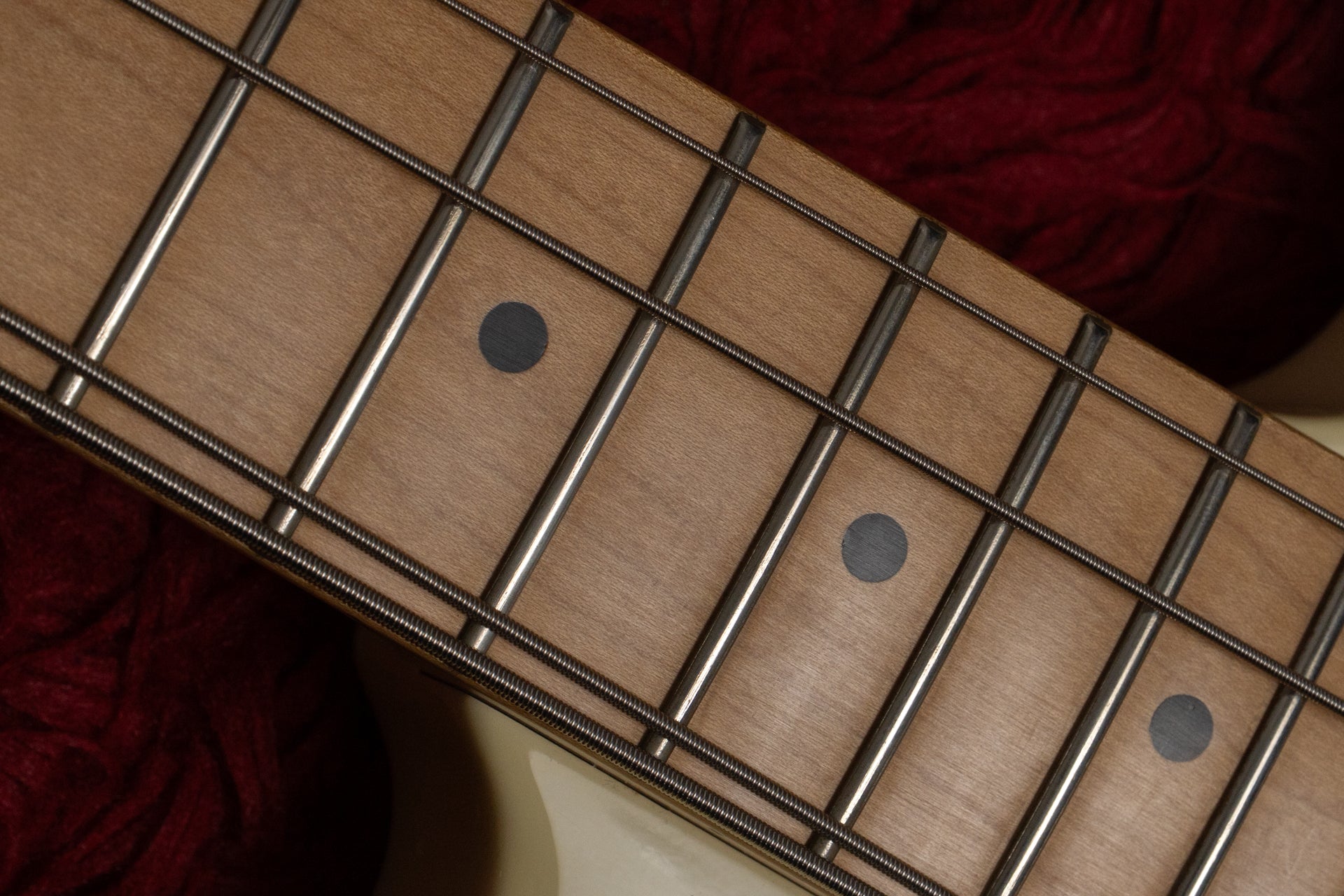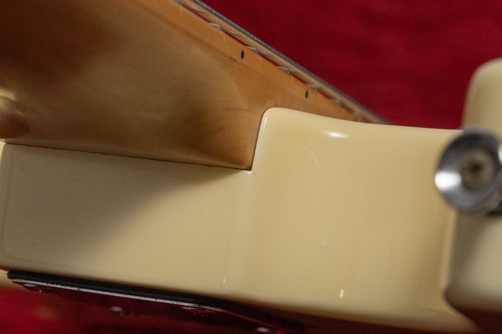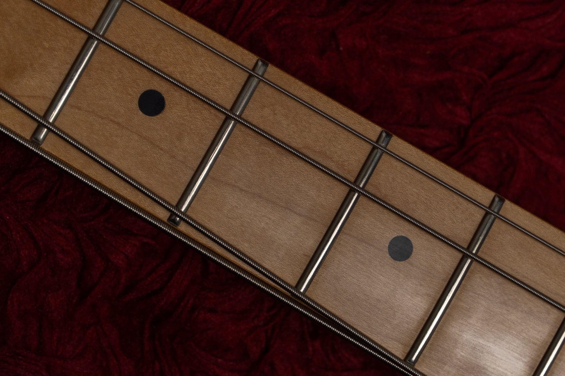 The neck has some minor scratches due to use. There is a slight forward bow on the 4th string side compared to the 1st string side.
