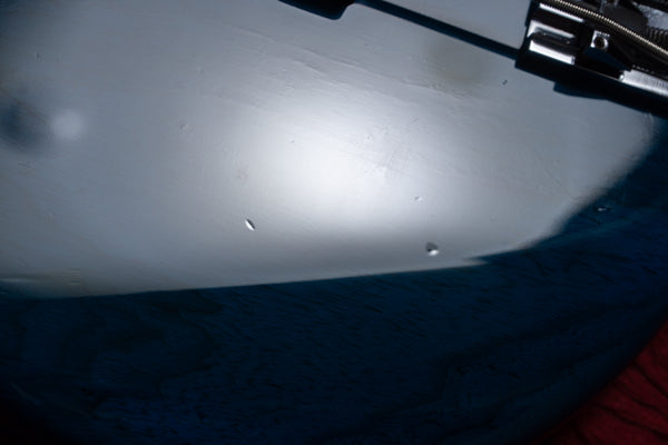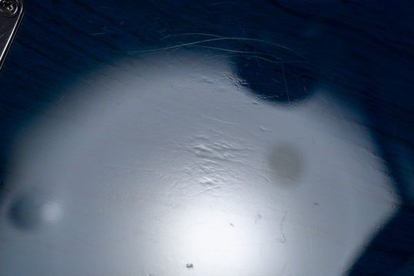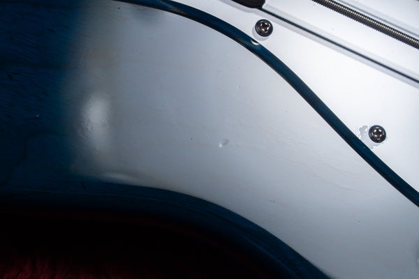 The body and paint have scattered dents and scratches. There is what appears to be a signature written in pen on the back panel. (It appears to be protected by something and will not come off easily.)