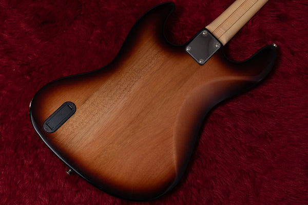 The body top is spalted maple, and the back is mahogany.