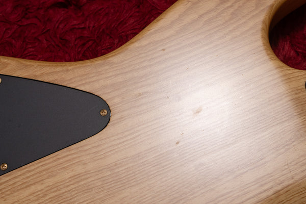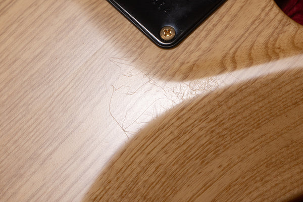 The body top is Burl Maple and the back is Ash.