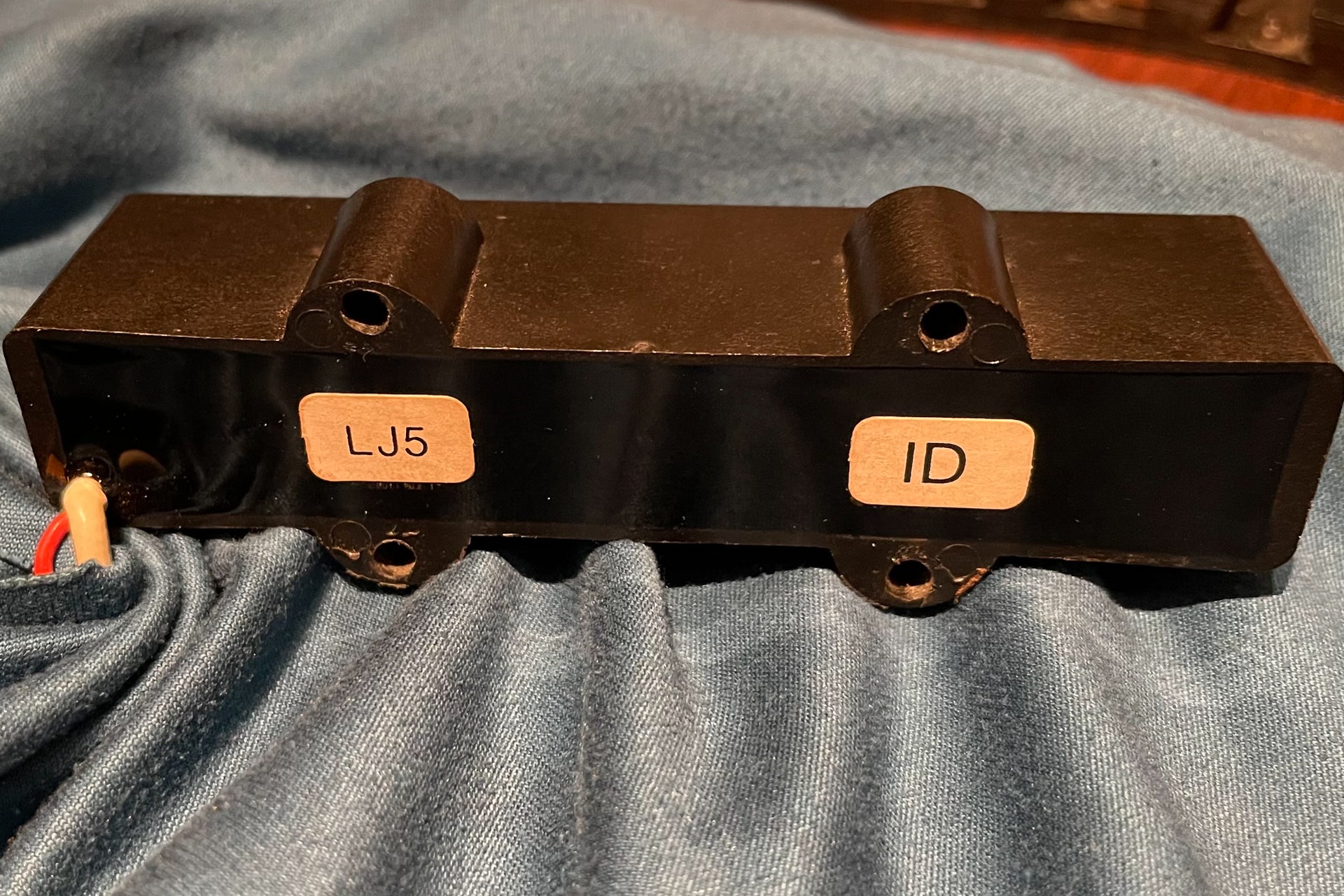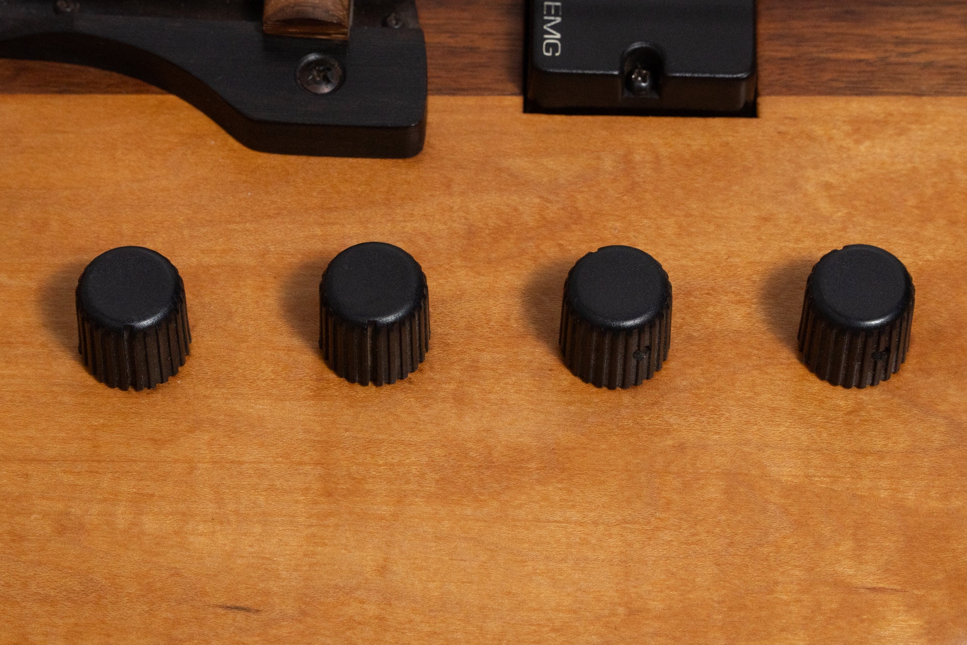 Controls: Neck pickup volume, bridge pickup volume, treble, bass