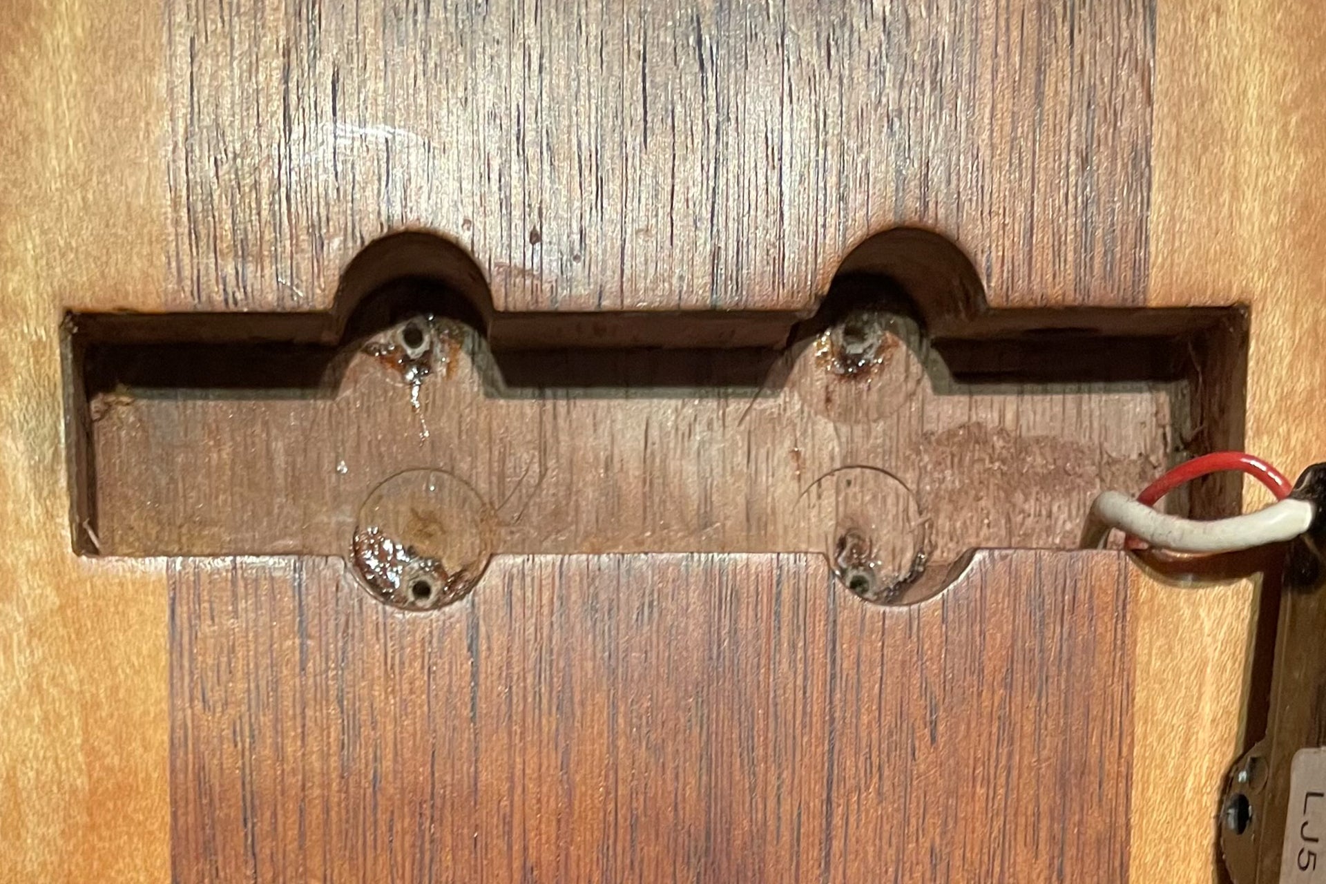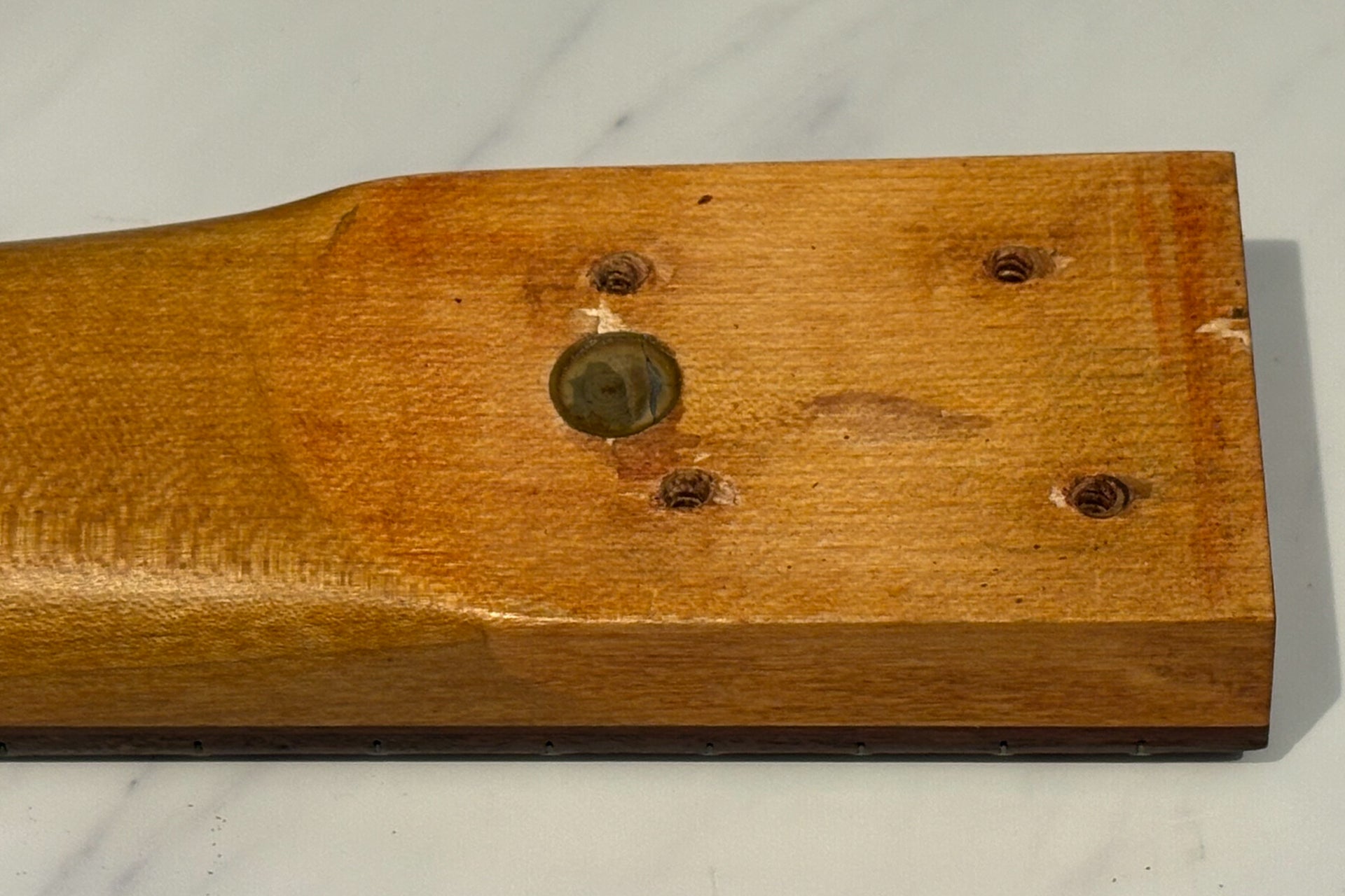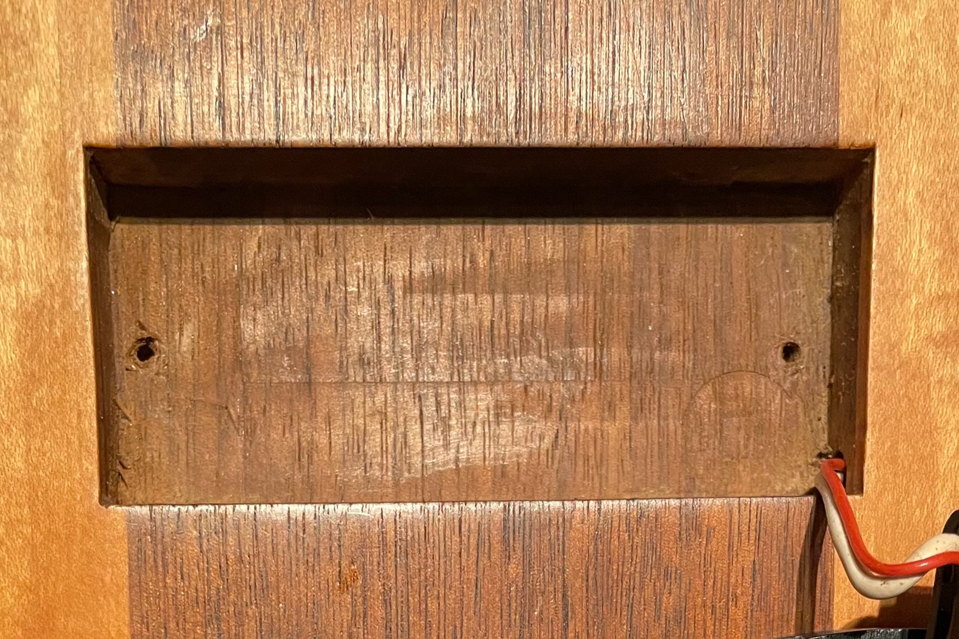 The body and finish show buckle marks, scratches, and dents. The neck pickup cavity is shallow, so we cannot lower the neck pickup to our standard settings. (This may be due to the thin body thickness.) Even with a string-to-pickup distance of 1.5mm on the 1st string side and 2.8mm on the 4th string side, the instrument plays without distortion.