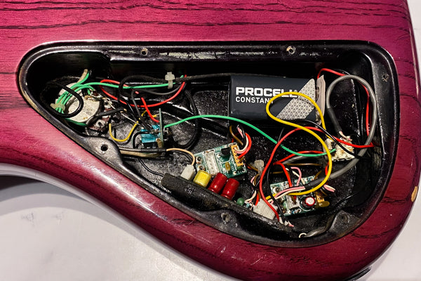 Due to a wiring issue, this guitar was repaired by GIB. The nut has been replaced. The bridge pickup has been treated with silver foil tape to reduce noise.