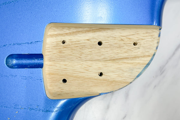 A pickguard is included, but the body does not have pilot holes, so modifications are required to install it.