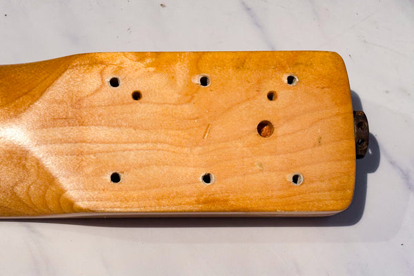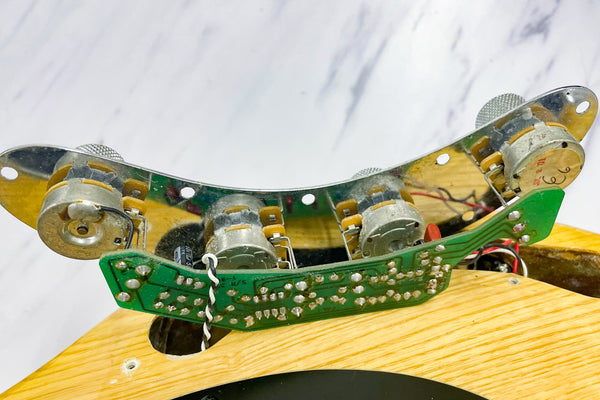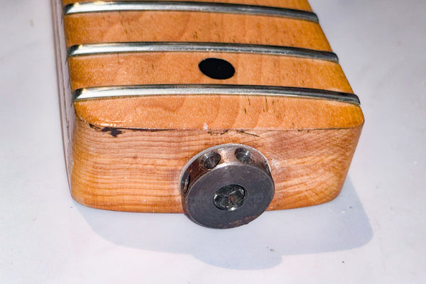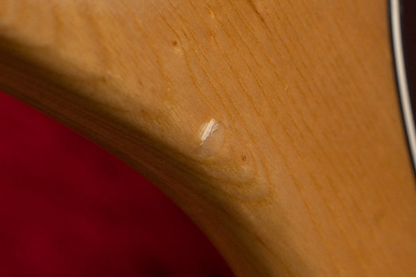 The nut has been replaced. Two knobs have been replaced. There are signs of repaired cracks near the neck pocket and joint screw holes. There are no problems with use.