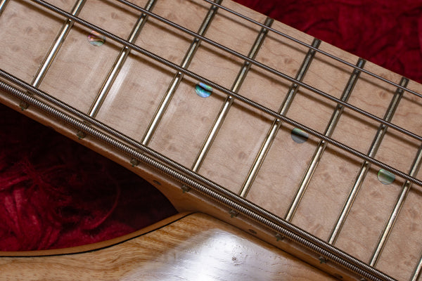 The neck is the classic 3-ply laminate maple neck, and the fingerboard is birdseye maple.