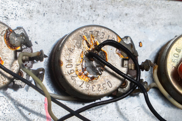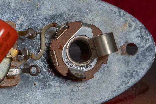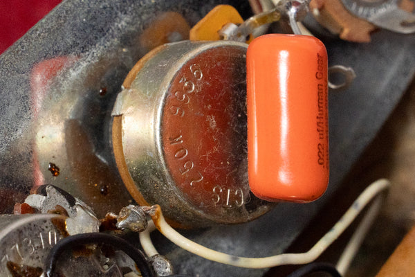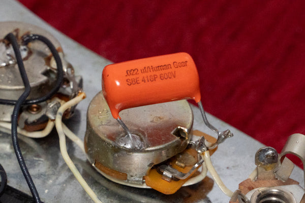 The tone pot and capacitor have been replaced. The nut has been replaced along with the refret. The octave adjustment screw for the 1st string has been replaced with a longer one.