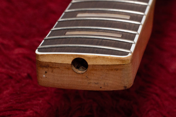 All pots have been replaced with 1980 CTS pots. We refretted the bass and replaced the nut. The strap pins have been replaced with Jim Dunlop locking pins.