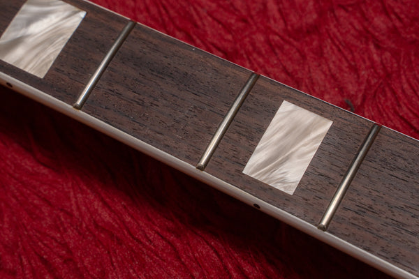 The neck shows slight high-rise. The GIB standard string height is 2.0mm-2.5mm above 12th fret, and depending on picking strength, there may be some buzzing in the higher positions.