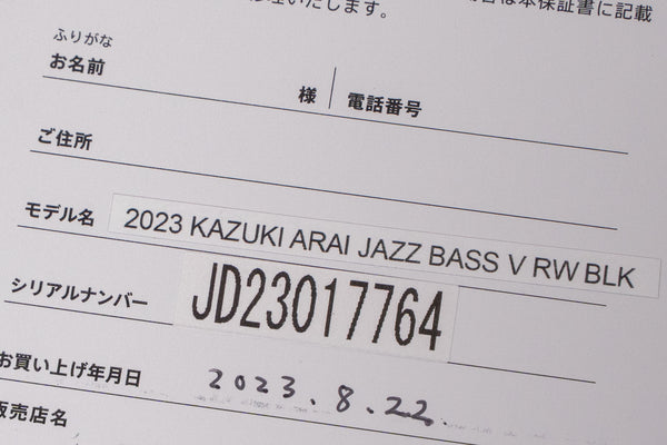 【used】Fender / 2023 Kazuki Arai Jazz Bass V RW BLK 2023 4.180kg #JD23017764【GIB Yokohama】